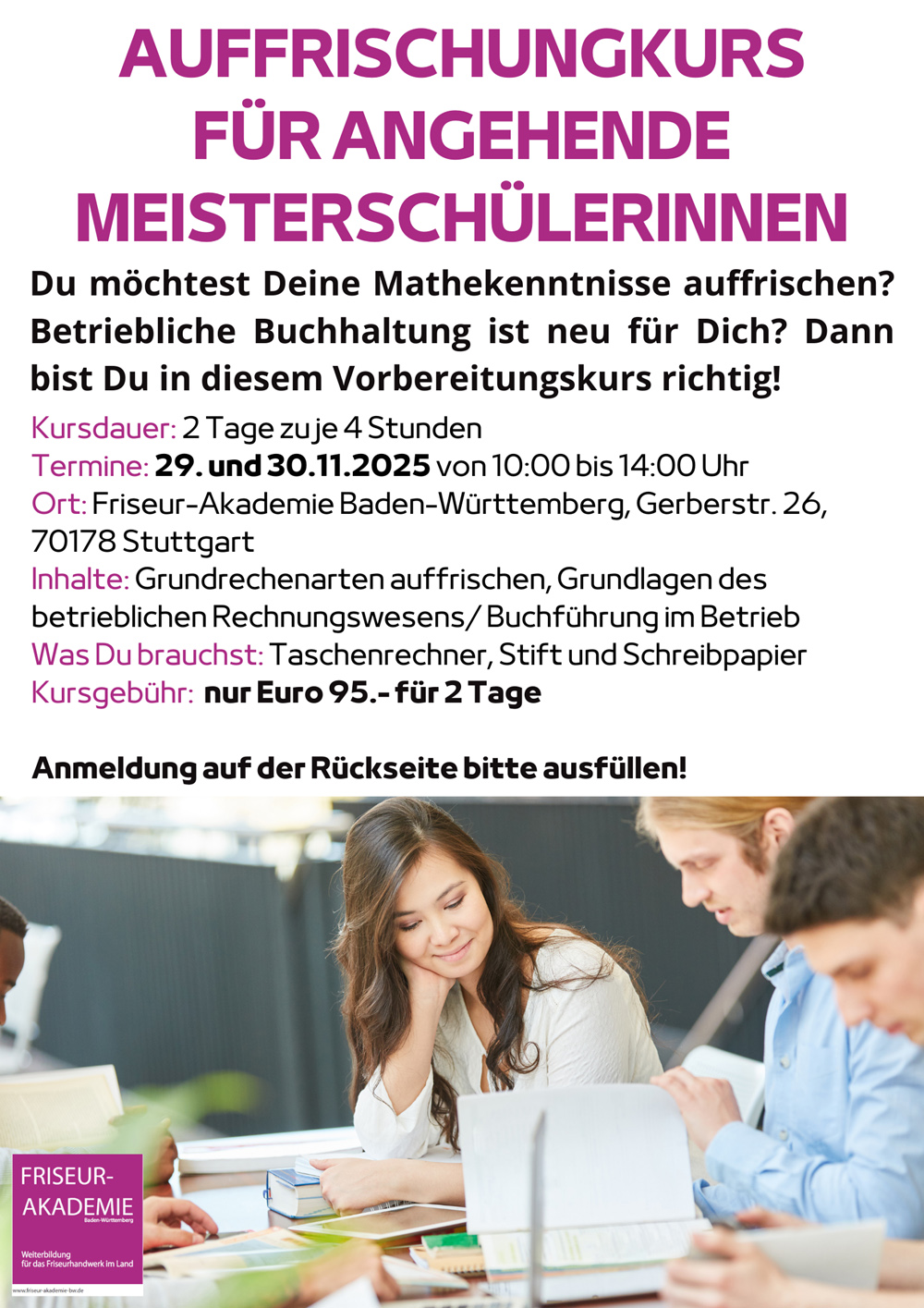 AUFFRISCHUNGKURS FÜR ANGEHENDE MEISTERSCHÜLERINNEN